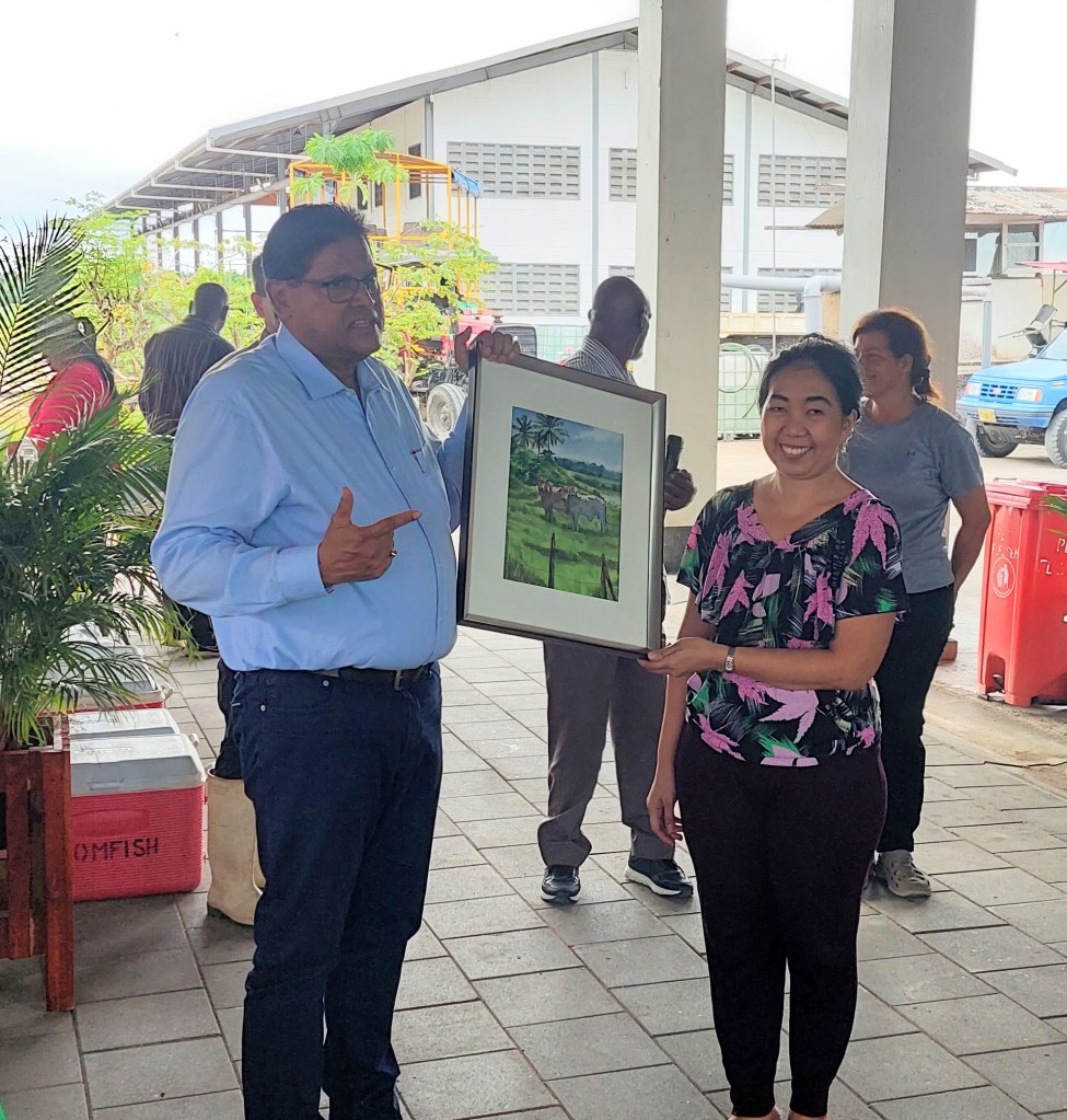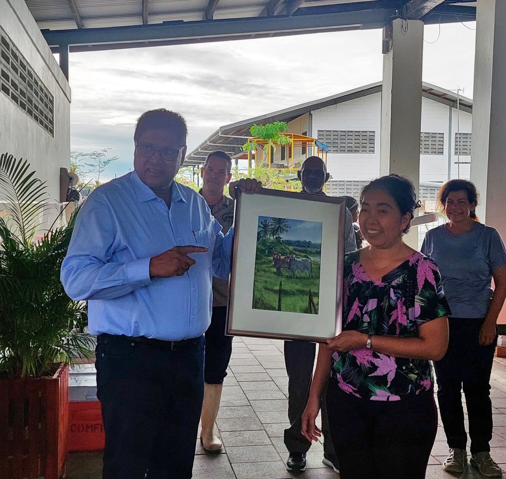 A Meeting with the President of Suriname Posted by watercolorsbymaria on October 30, 2022 Yesterday October 29 the Suriname President, President Chan Santokhi went to the VCM Plantations and I had the privileged to present to him my watercolor painting “The VCM Pastures”. Share this: Share on X (Opens in new window) X Share on Facebook (Opens in new window) Facebook Like Loading... Related