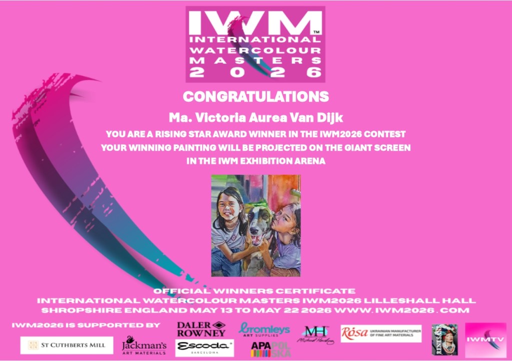 From 2,275 entries across 62 countries, my painting was chosen to be part of this prestigious event that celebrates the finest in contemporary watercolor. It will be projected on the grand screens at Lilleshall Hall, England, during the ten-day exhibition in May 2026, where it will be seen by thousands of visitors to the live show. The piece will also appear in the Rising Stars Programme on IWM TV, streaming globally from May 13, 2026.